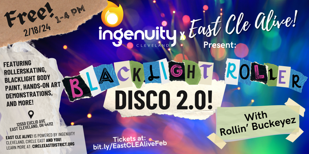 Returning for a second month due to high demand, join us for a Sunday funday of rollerskating with Rollin’ Buckeyez and DJ ICEMAN, DIY blacklight body painting station, blacklight resin casting with Morgan Ferweda, plus light refreshments!